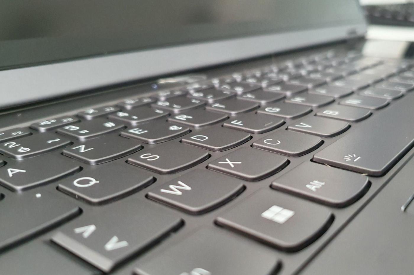 Le clavier est très correct sans être transcendant. Il se rapproche beaucoup de celui du Yoga Carbon (voir notre test), mais il nous a semblé un peu mieux stabilisé. Le retour tactile est satisfaisant, même si la frappe est un tantinet plus molle que sur les autres ThinkBooks. La course des touches nous a aussi semblé plus courte que d’habitude sur ces modèles. Au bout du compte, ça reste un clavier confortable à l’usage à défaut d’être particulièrement bon.