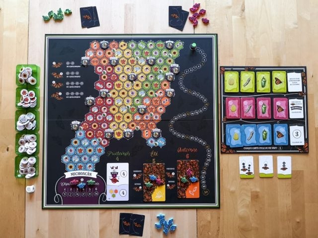 La dernière saison est la manche la plus longue avec 6 actions par joueur au lieu de 4 et 5 pour les manches précédentes, et c’est pourtant une manche qui ressemble à un sprint. Ramener un maximum de papillons à Michoacán rapporte beaucoup de point, mais vous vous creusez la tête pour optimiser vos déplacements qui sont limités. Certains favoriseront cette source de points de victoire tandis que d’autres chercheront à remplir les objectifs de fin de saison. Vous pouvez aussi essayer de grapiller des points sur les deux. Ces multiples stratégies donnent de la variété et de la profondeur au jeu.