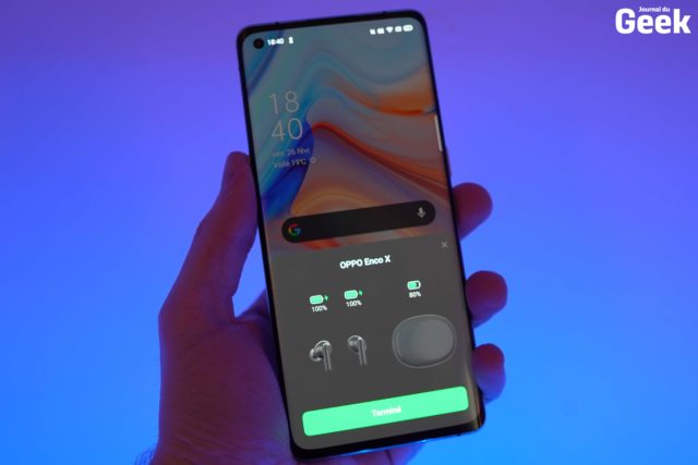Afin de personnaliser les contrôles des écouteurs, vous devrez nécessairement passer par l’application HeyMelody, ou, directement dans les réglages Bluetooth si vous utilisez un smartphone de chez Oppo. Malheureusement, l’application n’est compatible qu’avec Android, et il n’existe à ce jour aucune version dédiée à l’iPhone. Possesseur d’un smartphone pommé, les Enco X ne sont peut-être pas le bon choix à faire car vous ne pourrez rien personnaliser et devrez vous contenter des réglages par défaut des écouteurs, et vous ne pourrez pas non plus les mettre à jour. De notre côté, on les a utilisé aussi bien sur un smartphone Android qu’un Oppo Reno4 Pro, ainsi qu’un iPhone 12 Pro Max. Les écouteurs fonctionnent parfaitement sur ces trois supports, mais la palme revient évidemment à Oppo, puisque les Enco X profitent de fonctionnalités supplémentaires, dont une petite animation de démarrage vous précisant le niveau de batterie des écouteurs et leur connexion, un peu comme pour les AirPods dans l’écosystème Apple. D’ailleurs, concernant l’autonomie, on l’a trouvé très correcte, avec 5h30 environ par écouteur et un total de 25 heures grâce au boîtier (sans réduction de bruit) ou 20 heures (avec réduction de bruit).