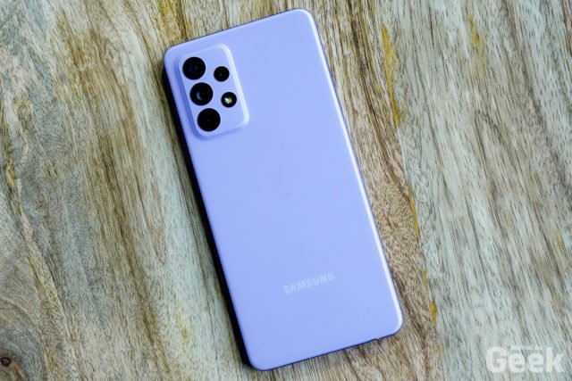 Lorsqu’on découvre, avec la prise en main de ces nouveaux Samsung Galaxy A, on découvre que les 3 modèles sont quasi identiques d’un point de vue extérieur. Si le Galaxy A72 est légèrement plus grand que les A52 et A52 5G, seul le bloc photo pourra donner un indice sur le fait qu’on a en main le Galaxy A72. Et quand aux Galaxy A52 et Galaxy A52 5G, ils sont identiques et on ne pourra pas faire la différence à l’oeil nu. A côté, les smartphones sont bien finis et si on y retrouve un design en somme assez classique, il rappelle parfaitement le design des Galaxy S21, ce qui donne une cohérence aux smartphones Galaxy de cette année. Sans surprises, le dos est bien en plastique mais il n’en reste pas moins qualitatif avec son revêtement mat et anti-traces de doigts. C’est une coque unibody qui va du dos aux tranches. On apprécie particulièrement le bloc photo aux couleurs du dos du smartphone et non façon plaque de cuisson de certains.
