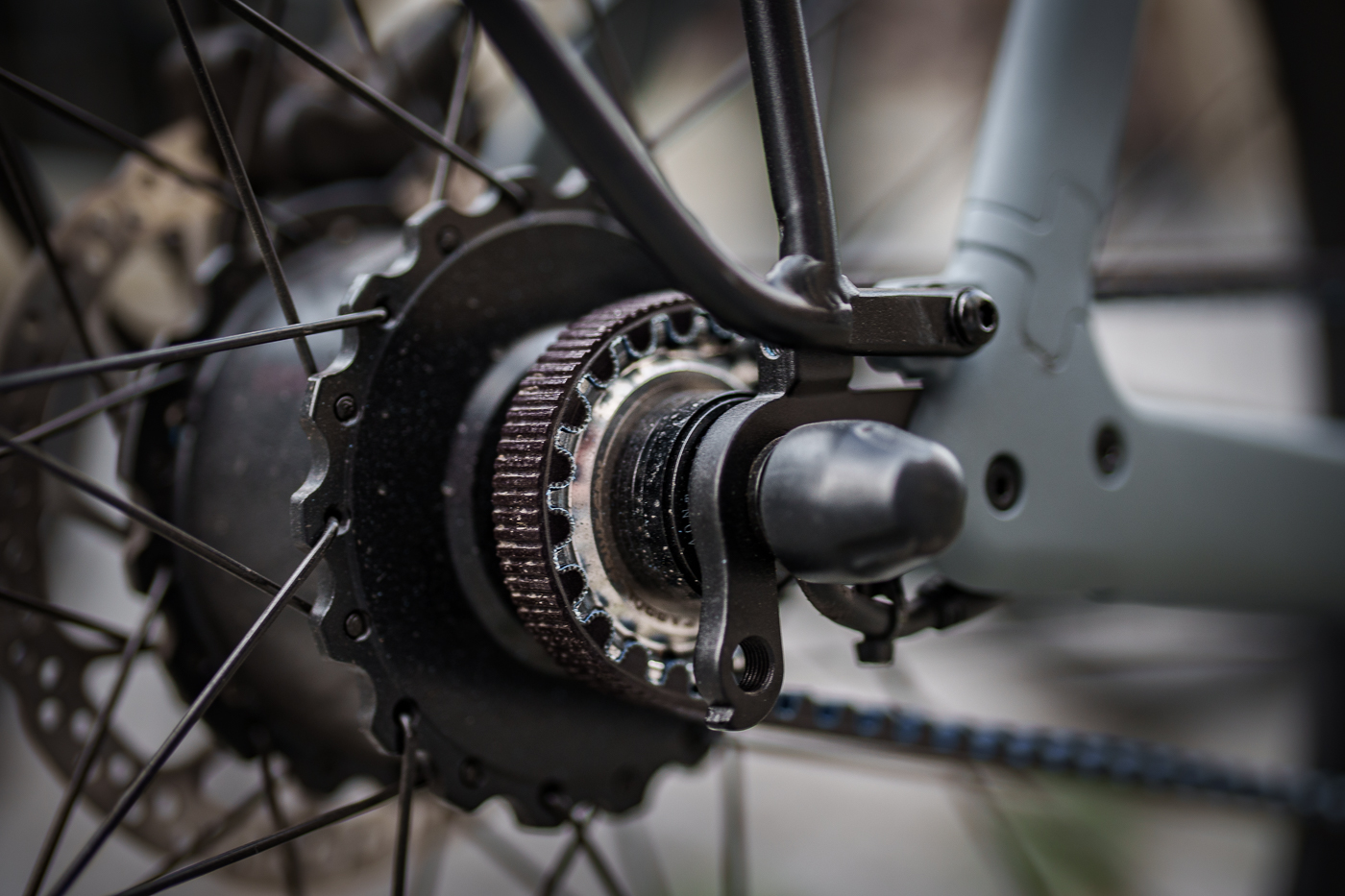 Le vélo est donc amusant à rouler, agréable, un poil sportif. Les deux types de transmission offrent cependant deux approches différentes. La courroie fonctionne en mode automatique à la manière d’un single speed. Elle est calibrée sur les 5 niveaux d’assistance. Idéale pour du velotaf, elle est limitée en dehors.