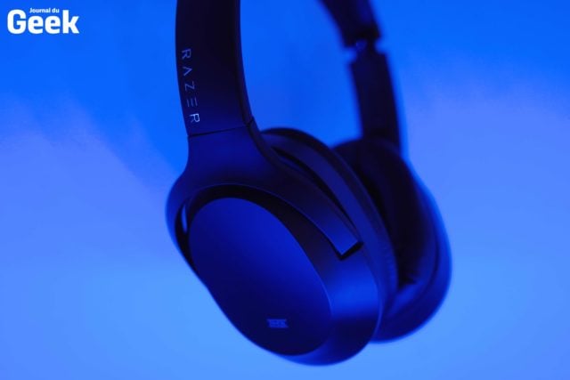Mais si le casque semble plutôt réussi dans sa conception, qu’en est-il du son qu’il délivre ? On l’a comparé frontalement avec un Sony WH-1000XM4, dernière référence de la marque nippone, pour se faire une idée, et autant vous dire que la différence existe, mais elle n’est pas vraiment flagrante. Ce serait mentir que de dire que ce Razus Opus, vendu seulement 209,99€, offre le même rendu sonore qu’un Sony WH-1000XM4 à 349,99€. Néanmoins, en passant de l’un à l’autre, on ne note pas de différence significative, même si le Sony offre de meilleures basses, notamment. Le rendu sonore délivré par le Razer Opus est néanmoins à la hauteur, avec un son riche, précis malgré des basses un peu molles sur des musiques modernes. On a tout de même trouvé que le niveau sonore maximal du casque était assez faible. Cela devrait suffire pour le commun des mortels, mais c’est un point à prendre en compte si vous aimez écouter votre musique (très) fort.