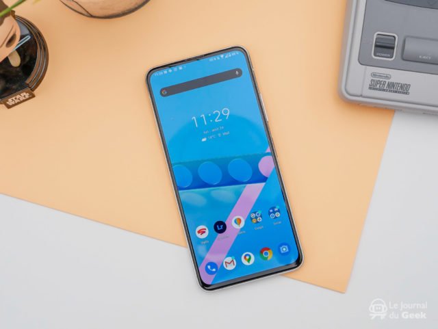 Un des reproches faits à l’Asus Zenfone 6, c’était son écran IPS. Que l’on ne s’y méprenne pas, il était très bien pour un écran IPS mais ce n’était pas un écran OLED. Aussi, montée en gamme oblige, Asus propose désormais avec le Zenfone 7 Pro un écran Super AMOLED et pas n’importe lequel puisque c’est un écran de Samsung. Asus aurait pu proposé un lecteur d’empreintes sous l’écran mais ce n’est pas le cas. On retrouve une définition Full HD+ qui, au quotidien, suffira amplement. Les bords d’écran ne sont pas les plus fins du marché mais ne posent pas de problème particulier dans la vie de tous les jours.
