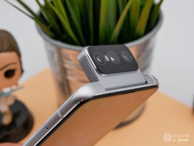 Dans tous les cas, avec le Flip Camera, à vous les selfies de la même qualité que le bloc photo principal. Cela concerne aussi bien les photos que les vidéos comme, sur le Zenfone 7 Pro, l’enregistrement de vidéos en 8K à 30fps ou 4K à 60fps ou même le mode ultra- stabilisation. Le Flip Camera a évolué par rapport à celui de l’année dernière. Il est un peu plus gros parce qu’il compte maintenant trois appareils photos mais surtout, son moteur a été revu, pour être plus petit et plus fins dans son déploiement. Si ce n’est pas forcément visible de prime abord, il est vraiment plus fin dans ses mouvements et peut même accepter trois pré-réglages de position. Pratique.