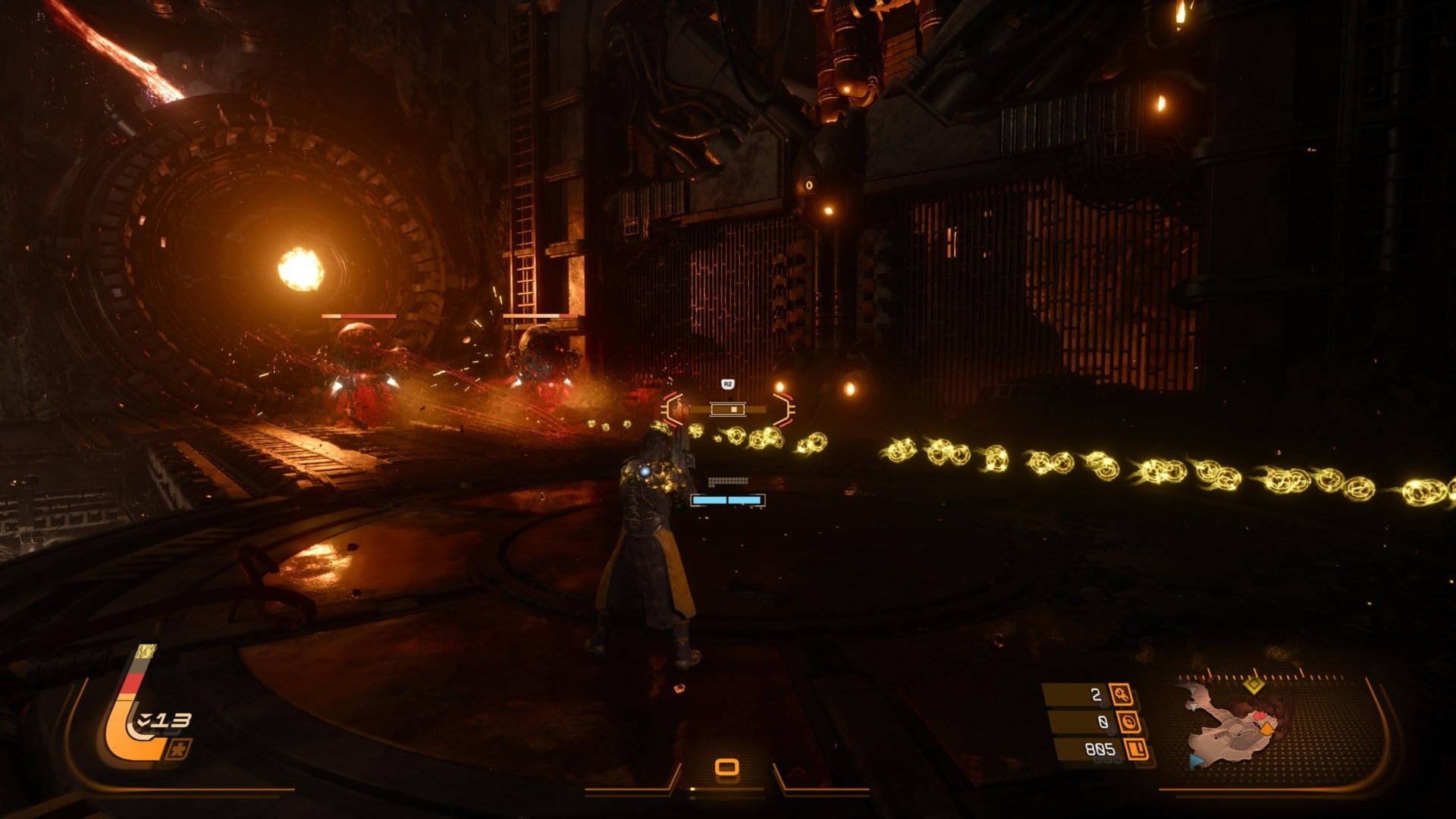 La filiation avec Returnal saute aux yeux dès les premières minutes. C’est bien connu, le studio mise avant tout sur les affrontements PvE pour se démarquer des autres shooters. Le “bullet ballet” (dont l’appellation succède au “bullet hell”) est toujours là, plus lisible, plus nerveux, et surtout encore plus maîtrisé si c’était toutefois possible. Que le joueur s’y habitue, chaque combat demande une attention constante et un niveau particulièrement élevé en gestion des informations affichées à l’écran.