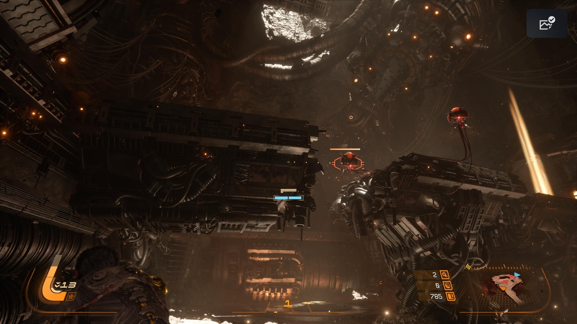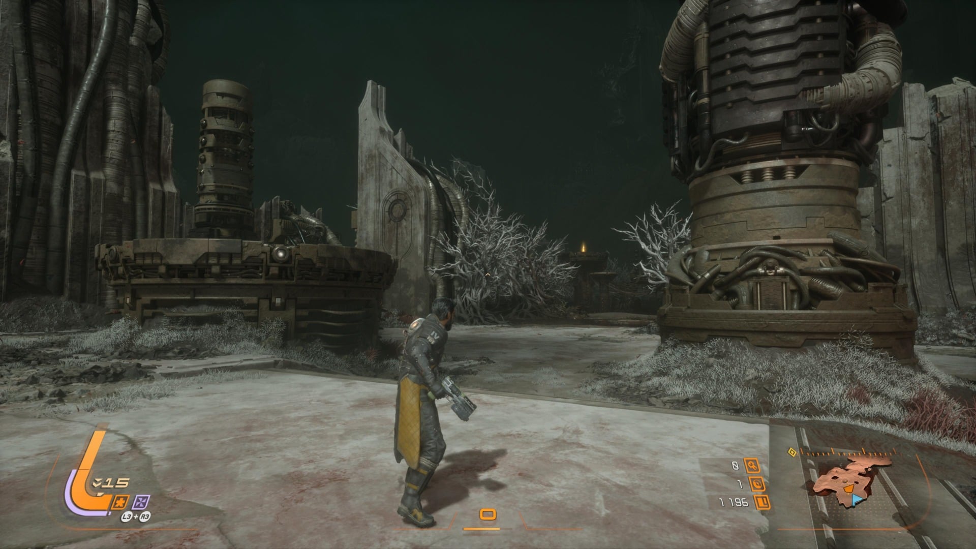 Côté environnements, l’ambiance est réussie, plus lumineuse que Returnal, avec une colorimétrie plutôt terne tout de même. Certains grands espaces vides offrent de quoi respirer, mais manquent parfois d’interactions ou d’éléments d’exploration. J’ai plus l’impression de courir que de découvrir surtout après quelques heures de jeu et c’est un peu dommage, d’autant que le potentiel est là.