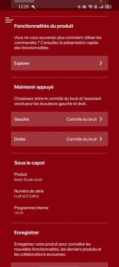 La grosse surprise vient du fait que les Studio Buds ne proposent pas de puce H1, ce qui ne permettra de basculer entre vos différents appareils Apple via le compte iCloud. De même, malgré le Bluetooth 5.2, pas de multipoint également, il faudra donc ré-appairer à chaque fois qu’on change d’appareil. A ce sujet, cela se fait relativement rapidement via le bouton à l’intérieur du boitier. En revanche, pas de soucis de connexion ou autres, et cela, que cela soit sur un iPhone ou un appareil Android. A noter que l’application Beats est disponible sur Android, ce qui permettra de paramétrer les écouteurs après un appairage supportant le Google Fast Par pour les appareils Android.