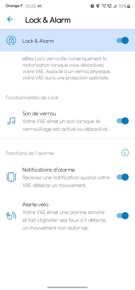C’est évidemment LA grande fonctionnalité de ce système : le suivi et le blocage du vélo en cas de vol. Trois actions ont alors lieu : le moteur empêche le pédalage, le vélo sonne et une notification d’alerte est envoyée sur votre smartphone, avec un suivi des mouvements du vélo en temps réel. Notez que cette fonction est intégrée ici, mais sur d’autres modèles, c’est une option, dont le module est à installer au niveau du moteur par un technicien agréé. Sur le papier, on a donc un concept intéressant. En pratique, on déchante.