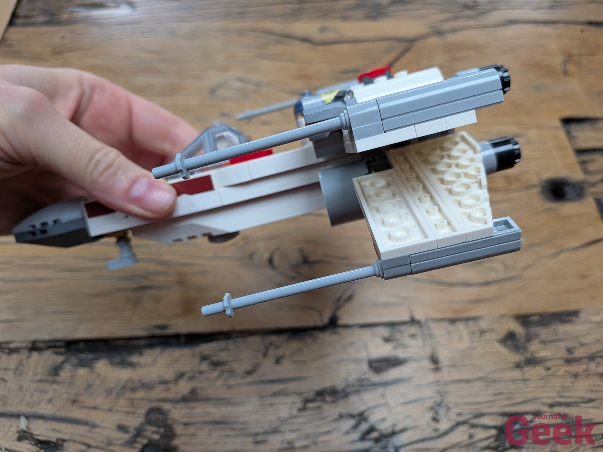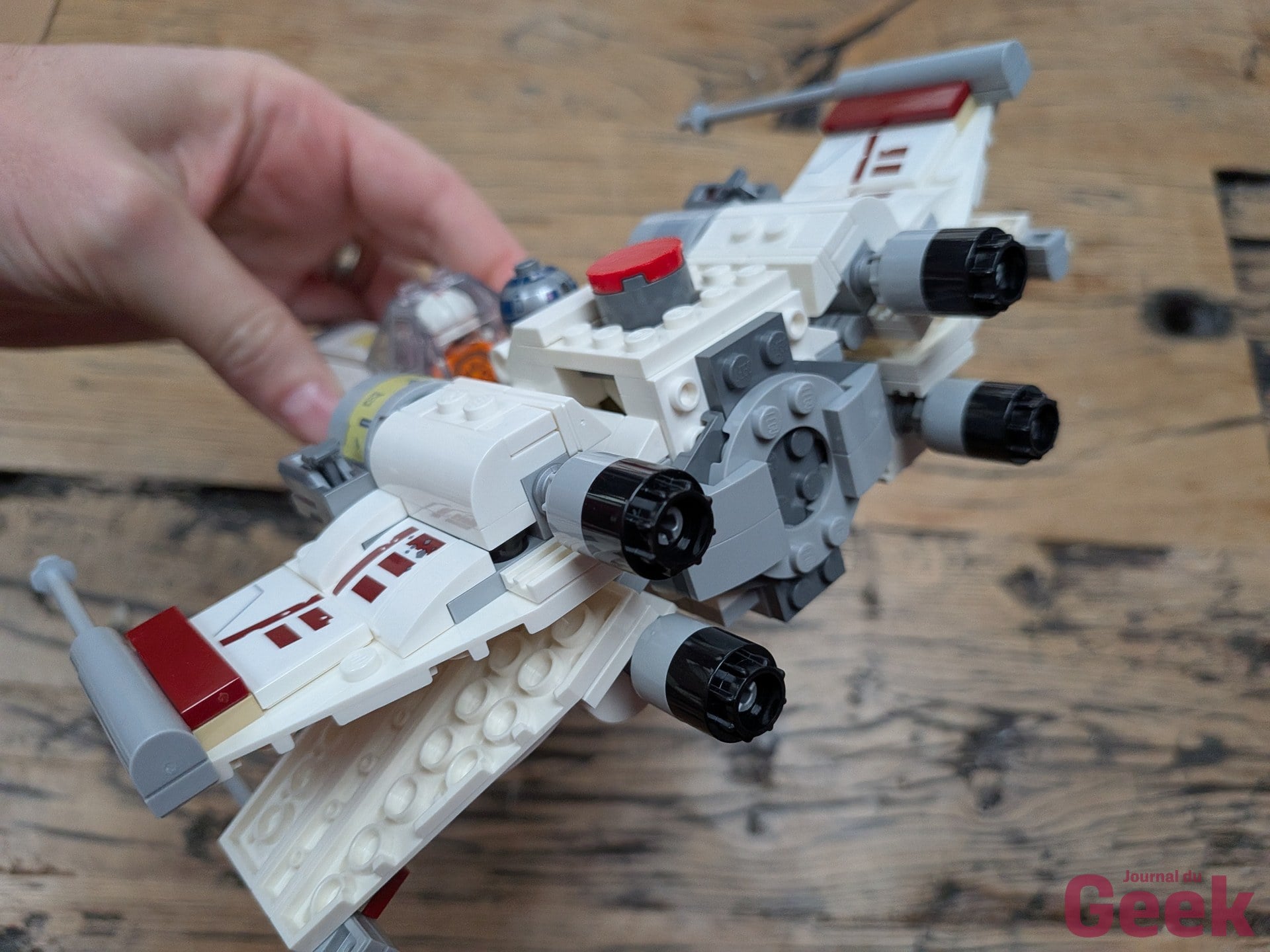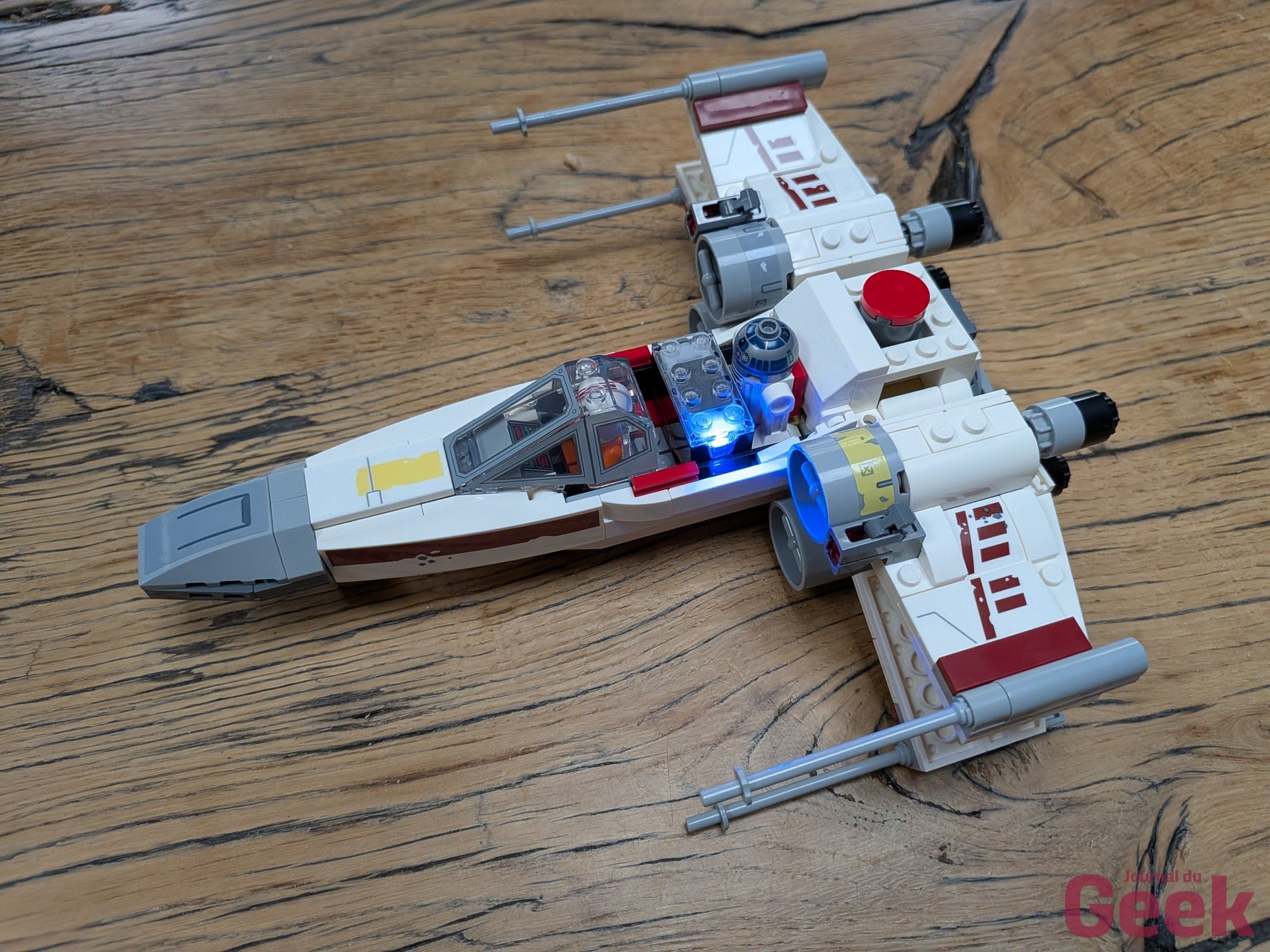 Un point à noter pour les fans de LEGO Star Wars habitués aux sets classiques c’est que les modèles de la gamme Smart Play présentent des espaces vides et des mécanismes inhabituels destinés à accueillir la Smart Brique. Le X-Wing n’est pas le plus beau X-Wing jamais produit par LEGO. C’est un compromis assumé entre esthétique et fonctionnalité puisque le cockpit doit pouvoir recevoir la brique, les structures doivent permettre l’accès aux tags. Pour un enfant qui joue, ça ne gêne pas. Pour un adulte qui compare avec les sets Star Wars UCS ou même les sets de jeu classiques, la différence est visible.