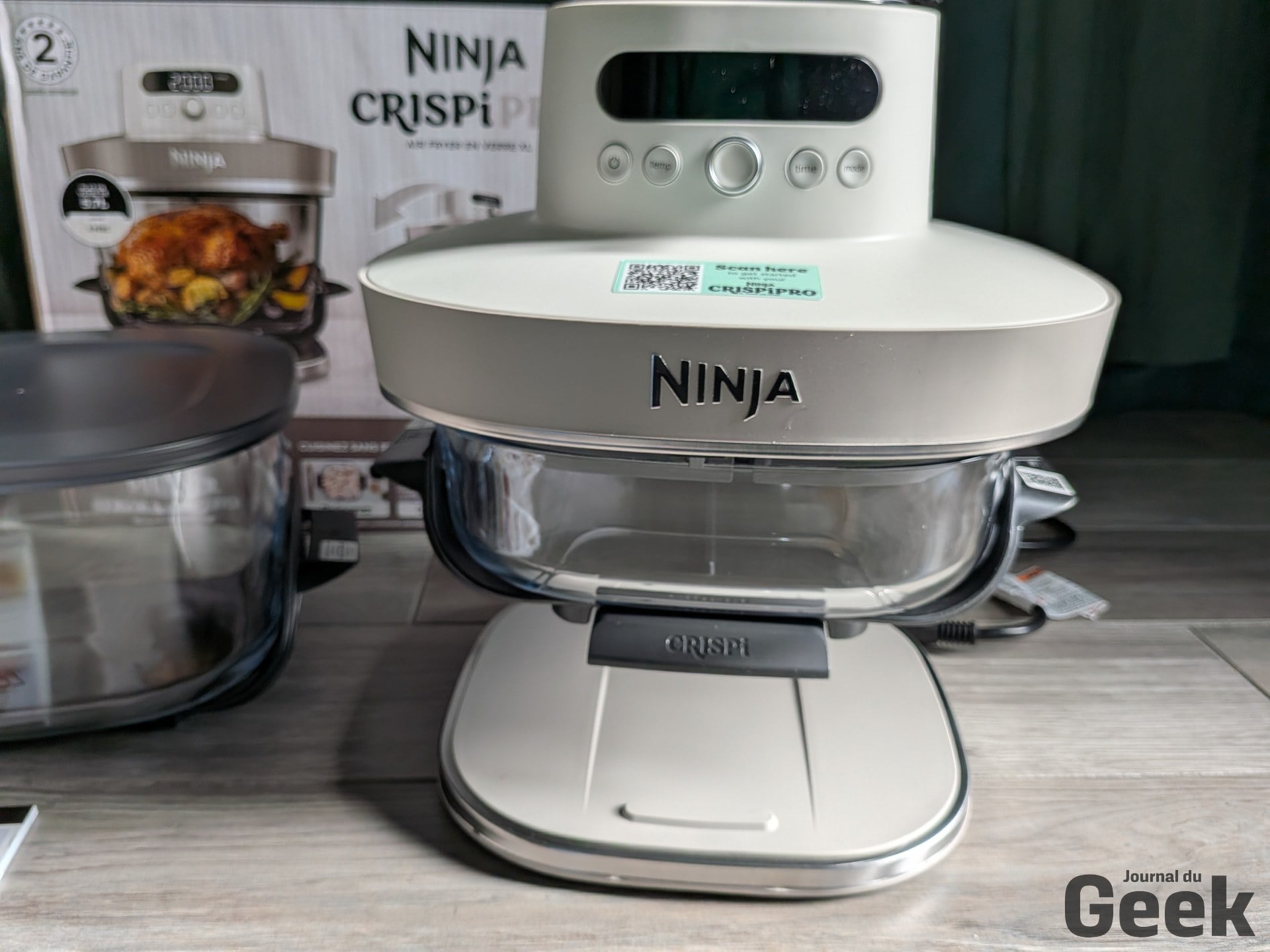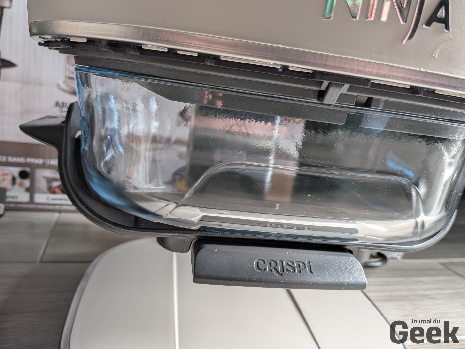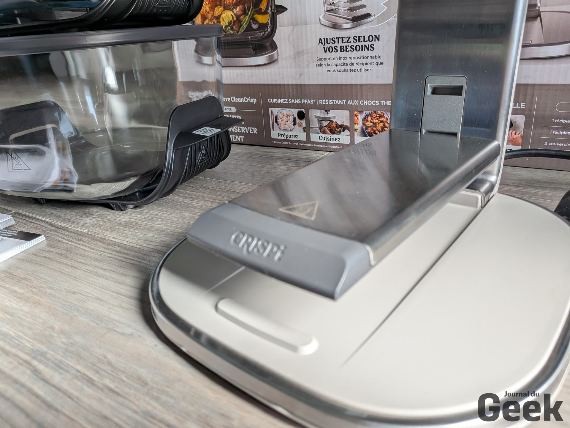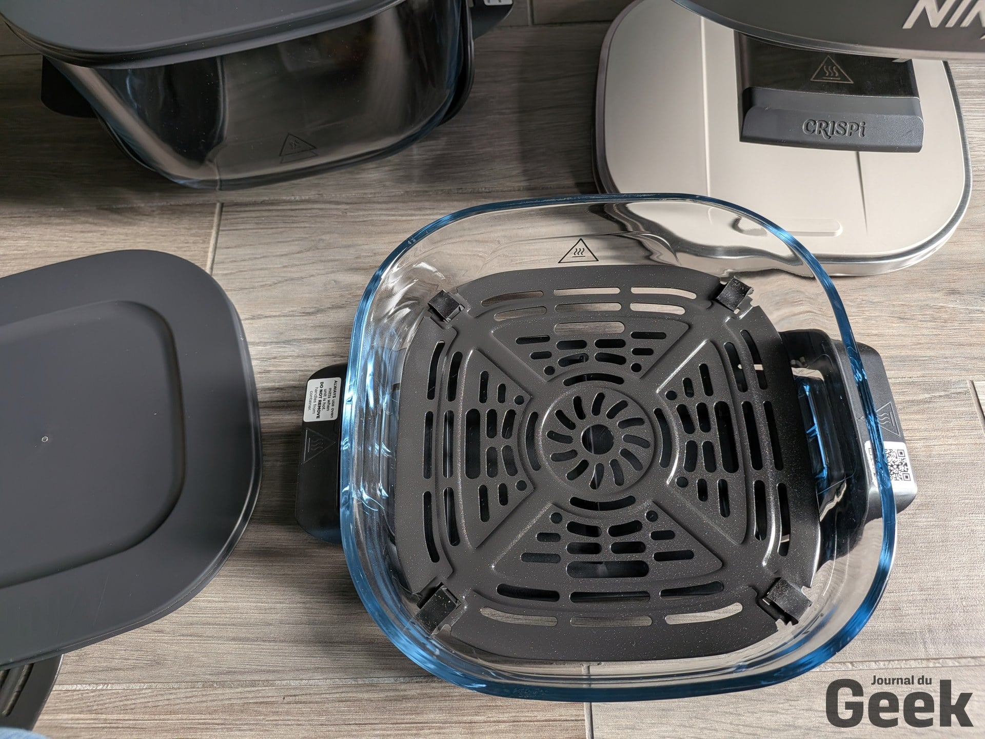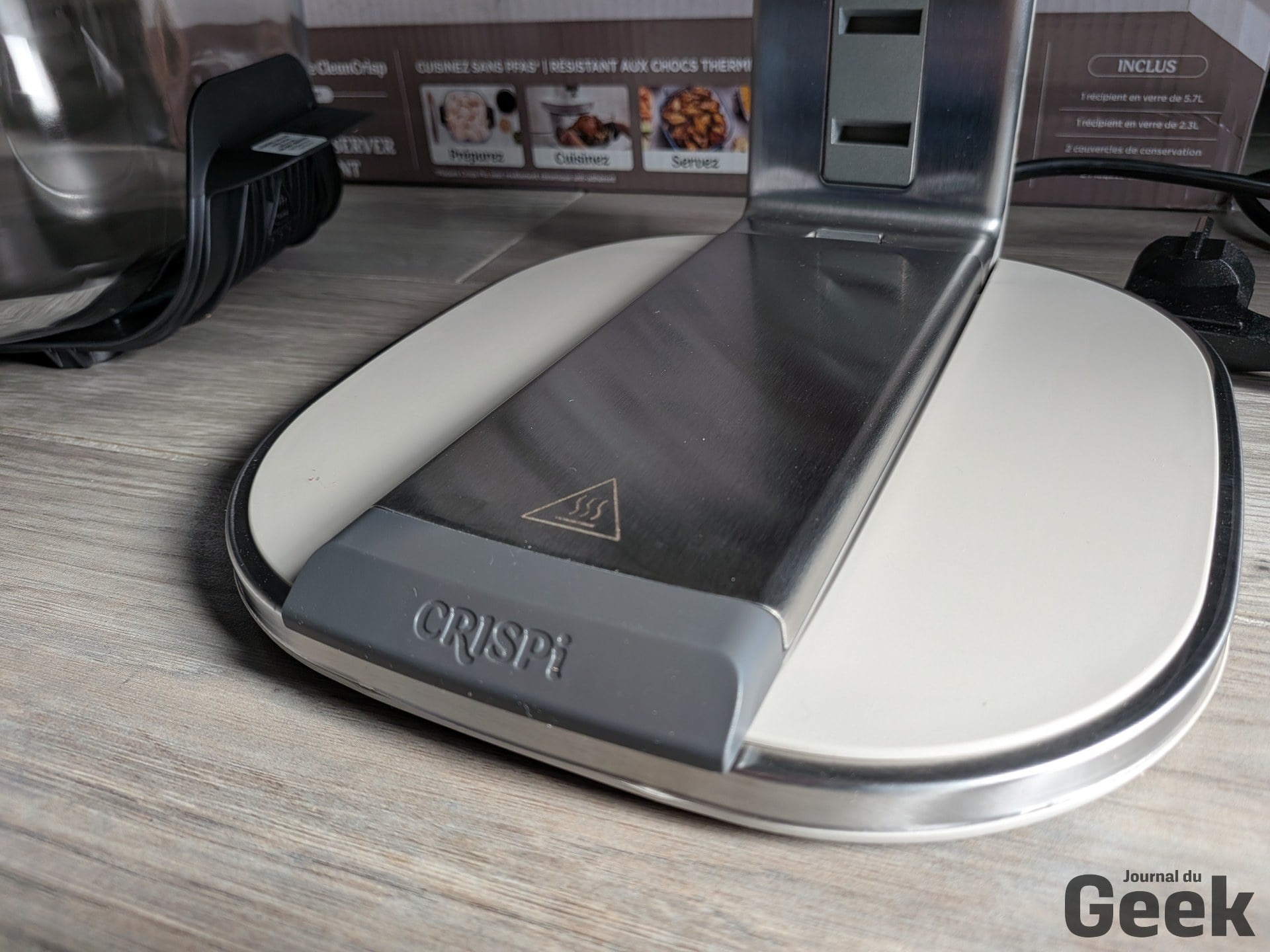 Un point soulevé par plusieurs testeurs étrangers mérite d’être relativisé : la plaque crisper se décrocherait facilement en basculant le bol. Sur notre unité de test, c’est l’inverse qui s’est observé. La plaque tient bien, et c’est même l’insertion du bol qui demande un peu de fermeté. Un ajustement à prendre en compte à la prise en main, mais pas un défaut. Sur le bruit, le Crispi Pro est dans la norme de la catégorie : audible, comme tout air fryer, sans être particulièrement rebutant pour un usage domestique standard.
