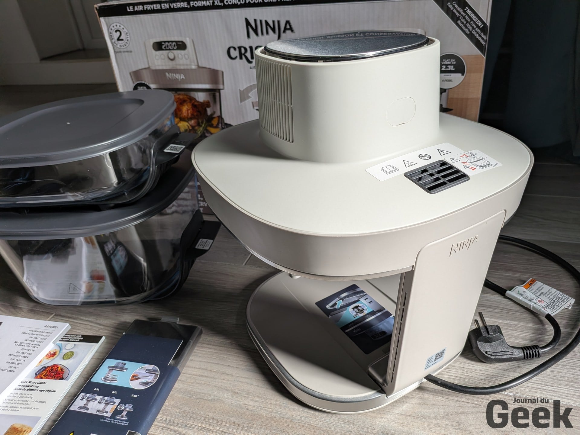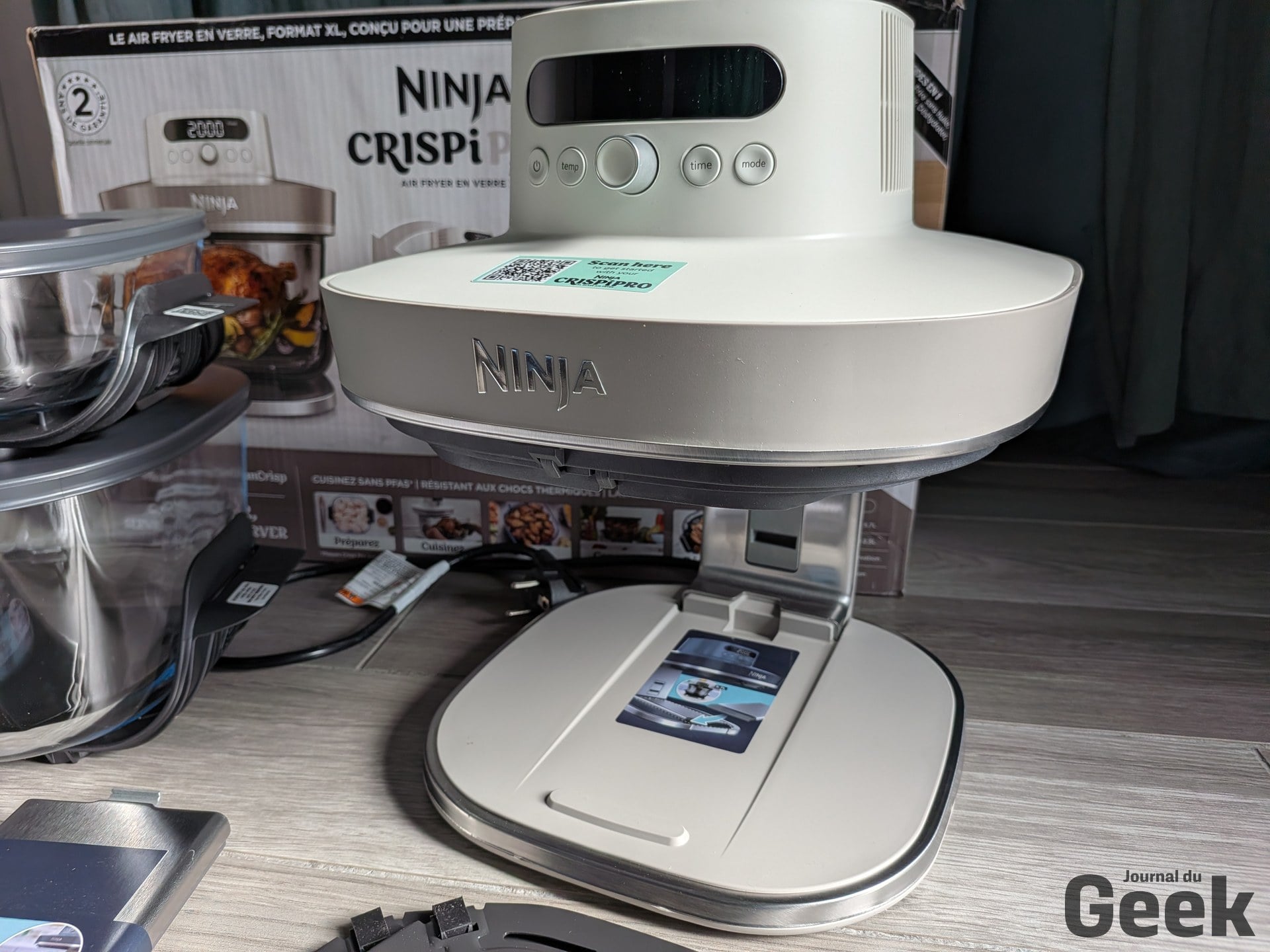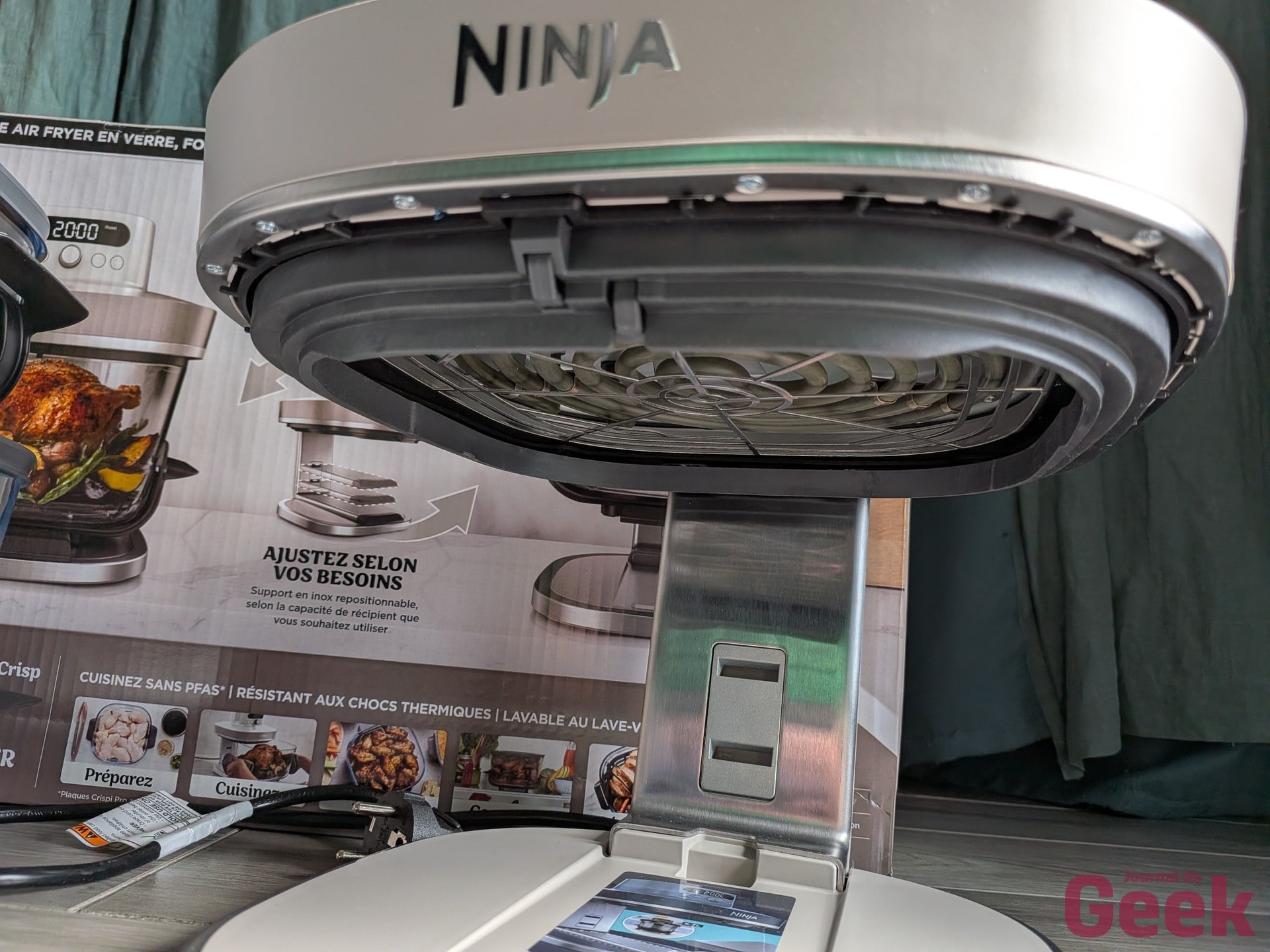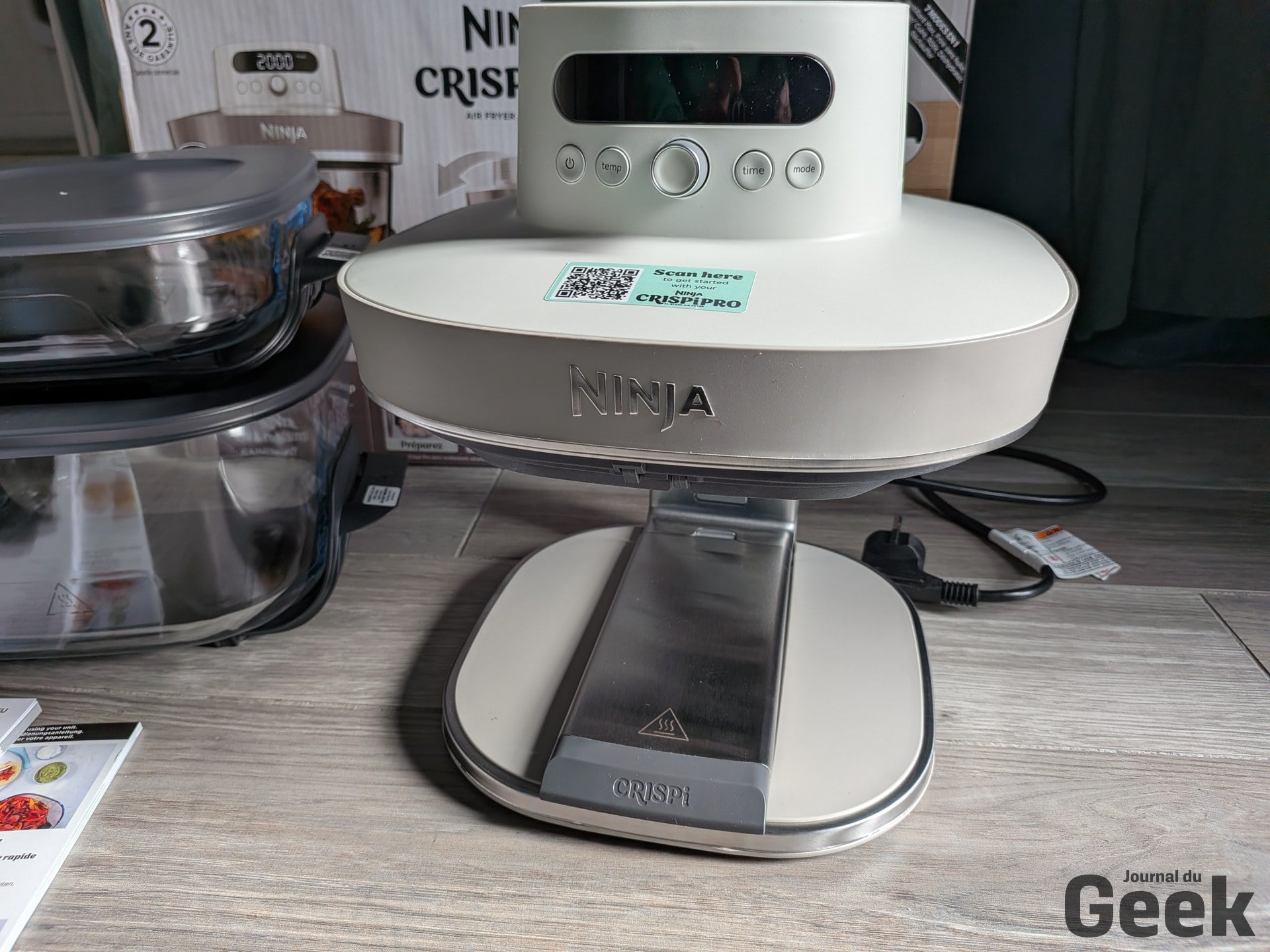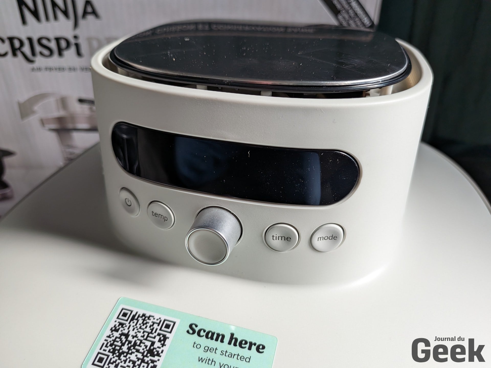 Un point soulevé par plusieurs testeurs étrangers mérite d’être relativisé : la plaque crisper se décrocherait facilement en basculant le bol. Sur notre unité de test, c’est l’inverse qui s’est observé. La plaque tient bien, et c’est même l’insertion du bol qui demande un peu de fermeté. Un ajustement à prendre en compte à la prise en main, mais pas un défaut. Sur le bruit, le Crispi Pro est dans la norme de la catégorie : audible, comme tout air fryer, sans être particulièrement rebutant pour un usage domestique standard.
