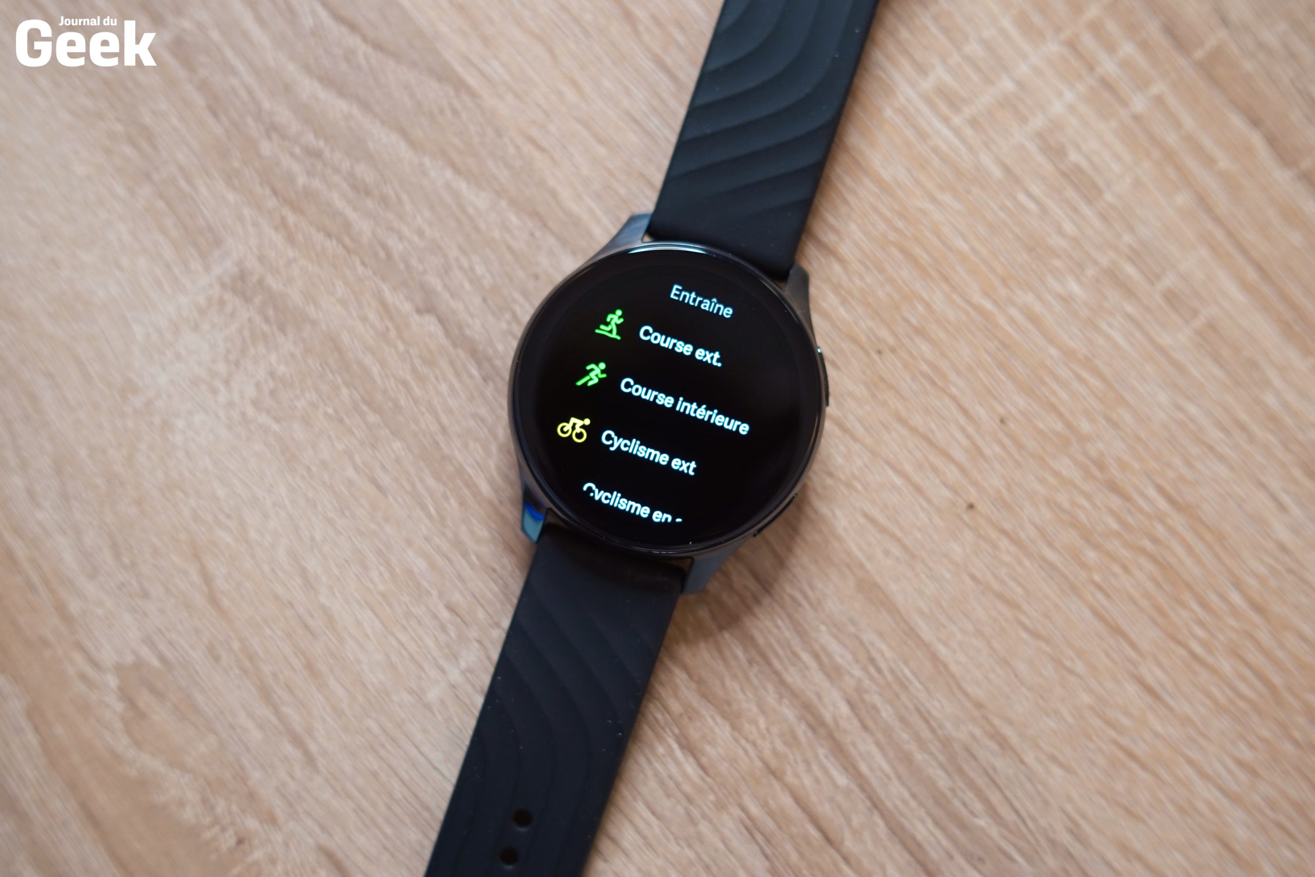 Contrairement à de très nombreuses montres connectées du marché, la OnePlus Watch ne tourne pas sous Wear OS, l’OS de Google dédié aux smartwatches, mais mise plutôt sur une interface propriétaire, Smart Wear. Puisqu’il s’agit d’une nouveauté, tout n’est clairement pas parfait, notamment du côté des traductions franchement imparfaites. Mais cela devrait s’améliorer au fil des mises à jour.