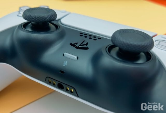 Les sticks analogiques symétriques proposés ne plairont pas forcément à tous les joueurs. Ils restent cependant super efficaces. On apprécie la nouvelle texture et la nouvelle forme sur le dessus des sticks analogiques qui permettront une meilleure accroche. On espère juste que la qualité sera au rendez-vous et que le caoutchouc ne rendra pas l’âme trop vite comme cela avait été le cas lors du lancement de la PS4. On note également le petit haut-parleur, très efficace quand il est bien utilisé et la surface tactile cliquable qui ne sert pas toujours mais qui a le mérite d’être présente et de donner des options supplémentaires aux développeurs des futurs jeux.