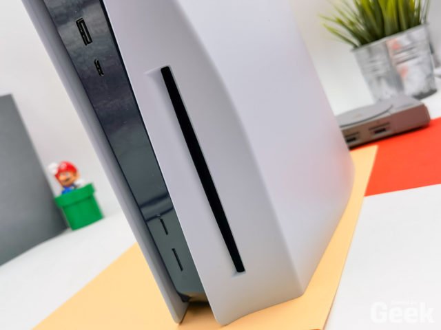 On notera la possibilité d’y brancher n’importe quel disque dur ou disque SSD externe pour étendre la mémoire de la console et y installer principalement les jeux PS4. D’ailleurs, dans les options de la console se trouve une option qui permet d’installer automatiquement tous les jeux PS4 par défaut sur ce disque externe. Si on souhaite étendre la mémoire même de la console, pas de port d’extension de stockage comme sur la Xbox Series X mais un emplacement M.2 NVMe à l’intérieur de la console. Il faudra juste « ouvrir » la console, chose qu’on n’a pas fait encore puisqu’on n’avait de disque M.2 NVMe à disposition et car cela ne sera disponible que via une prochaine mise à jour selon Sony. Western Digital est sur le coup apparemment.