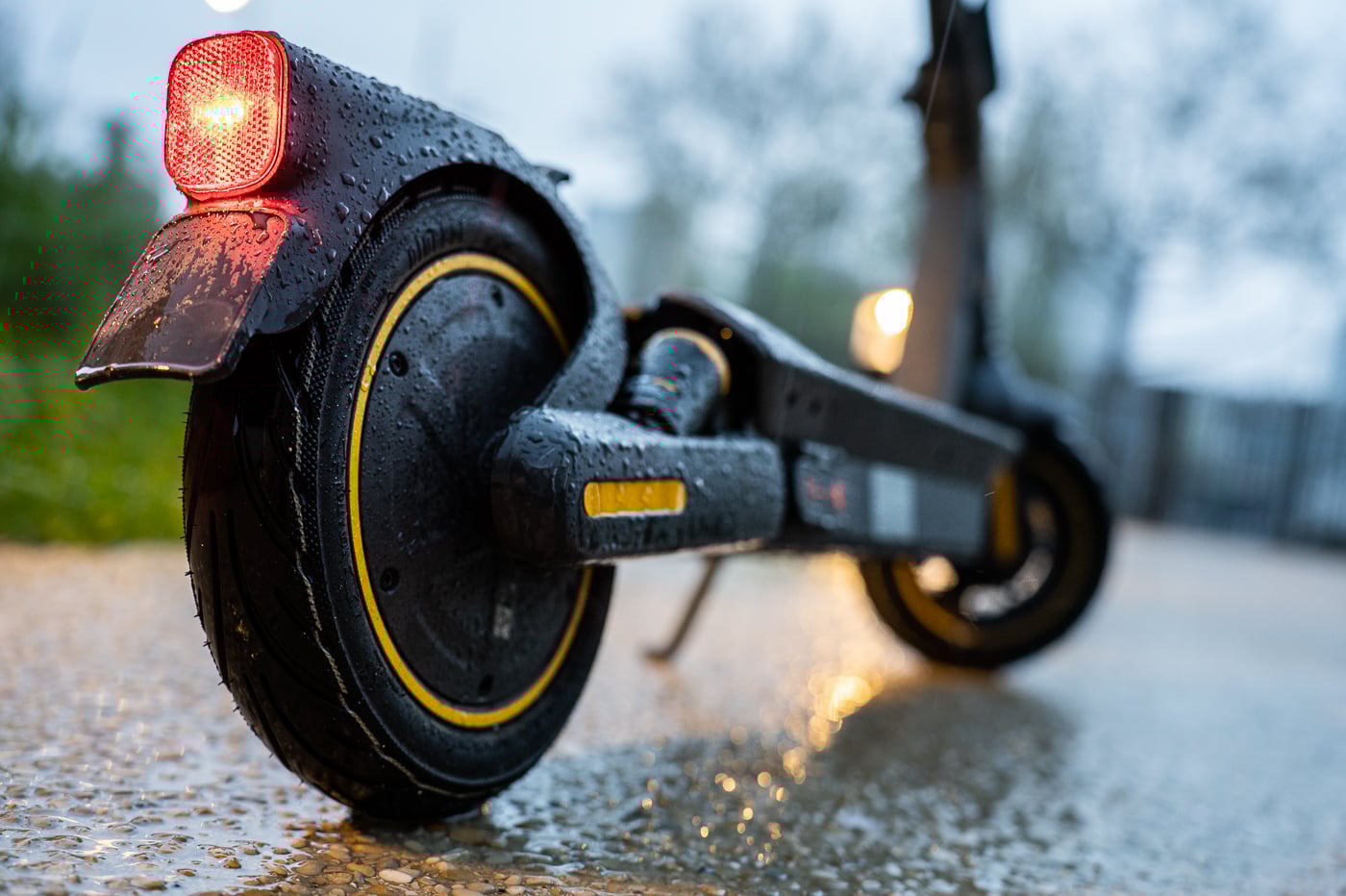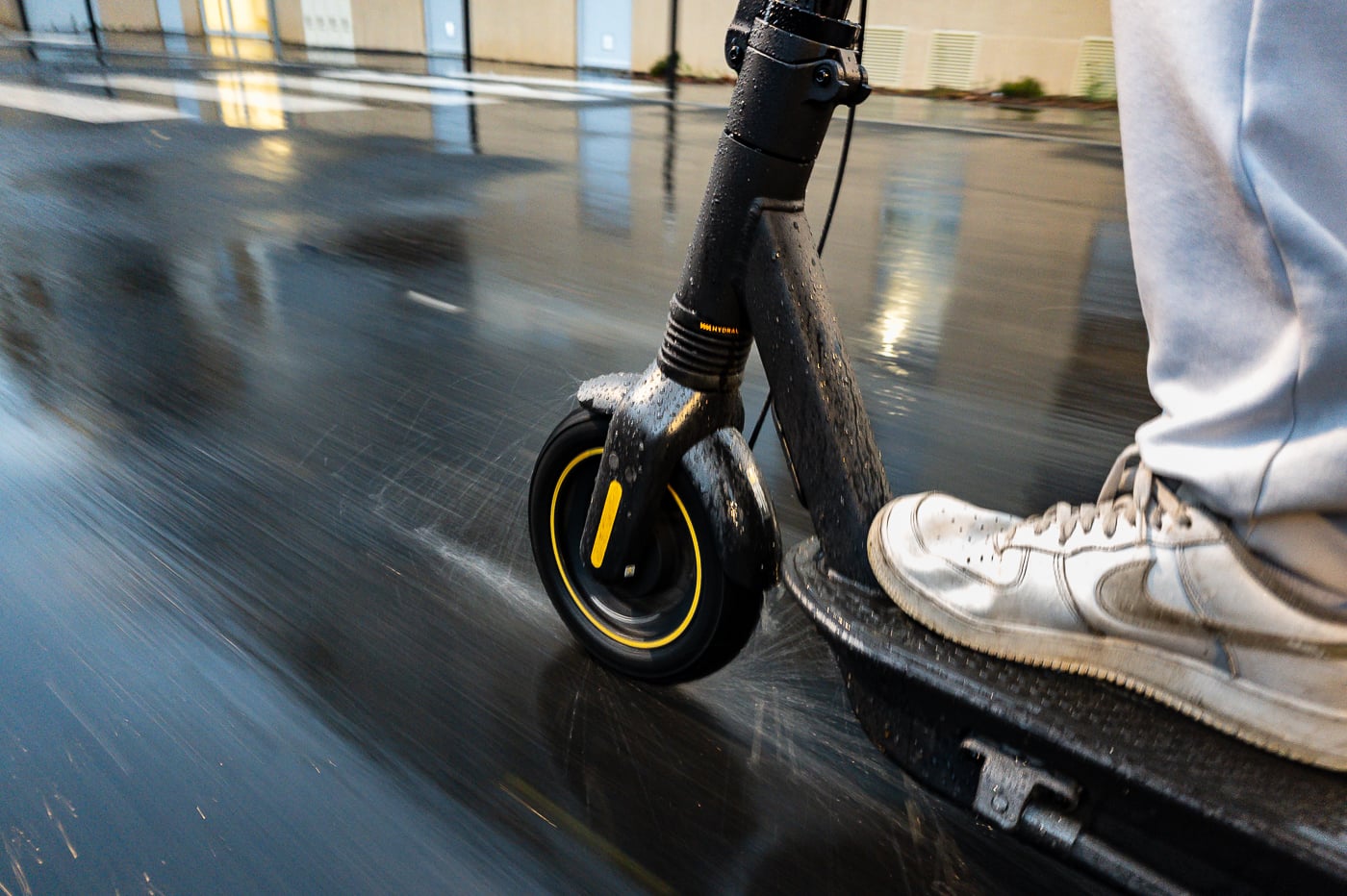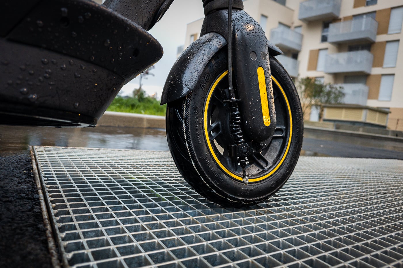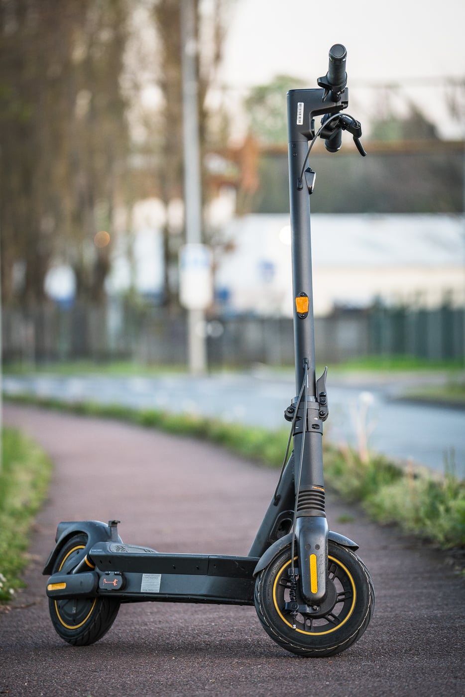 Passons maintenant aux défauts : le freinage est identique à celui de la G30 Max. Si les 19 kg de l’ancienne version pouvaient être gérés par le frein à tambour intégré à la roue avant, les 24 kg de celle-ci sont déjà plus difficiles à arrêter. Ajoutons les suspensions qui engendrent un peu d’inertie, et on se retrouve avec des distances légèrement plus longues lors des freinages d’urgence. Afin d’ajouter un peu de rigueur scientifique, nous avons mesuré la distance de freinage : 11 mètres pour freiner la trottinette lancée à 25 km/h, en ligne droite et sur route plane.