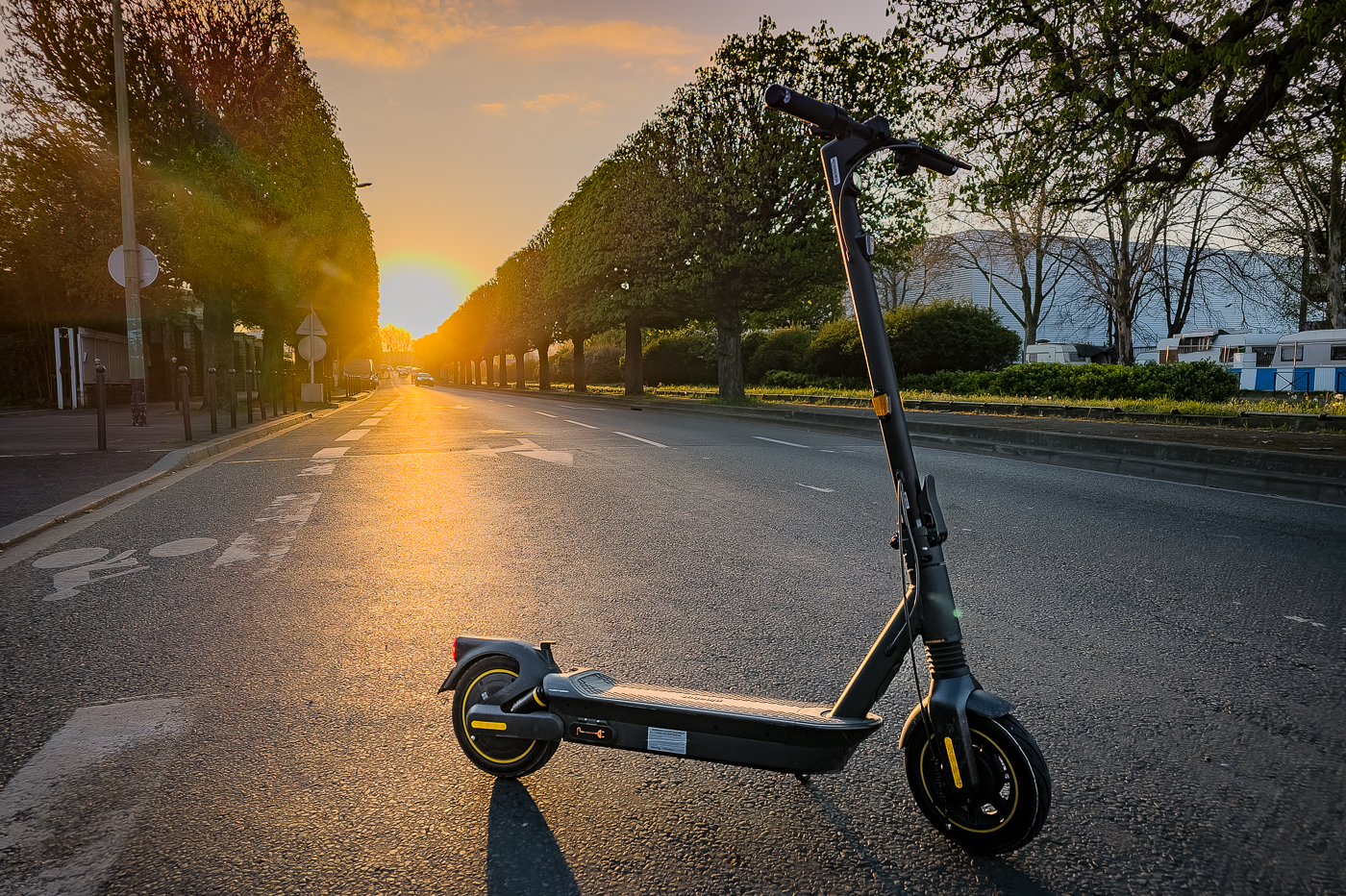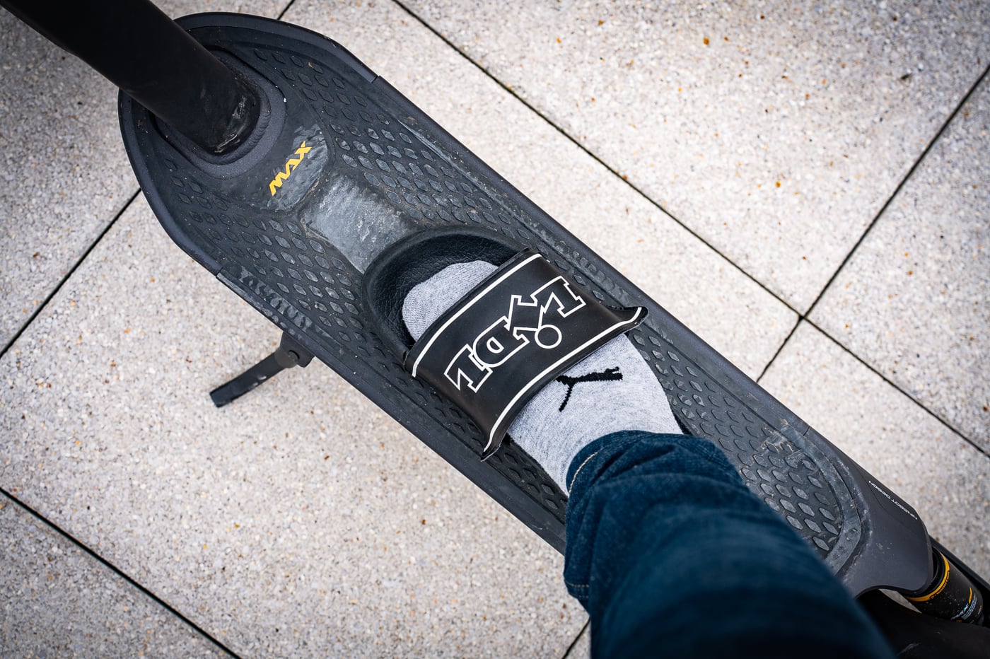 La partie la plus cool de l’essai, avouons-le. Mais il faut savoir que nous avons eu droit à une version un peu spéciale : elle est arrivée aux normes US, c’est-à-dire limitée à 32 km/h. C’était vraiment agréable à utiliser, sur voie privée évidemment. Cependant, nous devions rester professionnels. Comme la mise à jour ne pouvait pas encore être effectuée, nous avons bridé la trottinette à 25 km/h. Les résultats d’autonomie sont donc établis sur une base de 25 km/h. Tous les types de terrains ont été explorés lors du test.