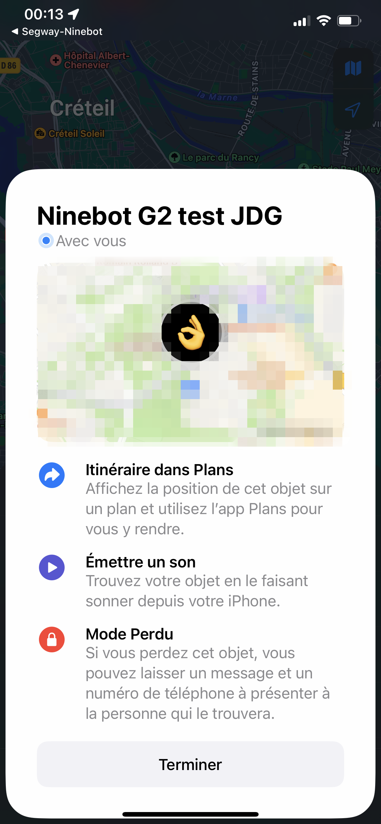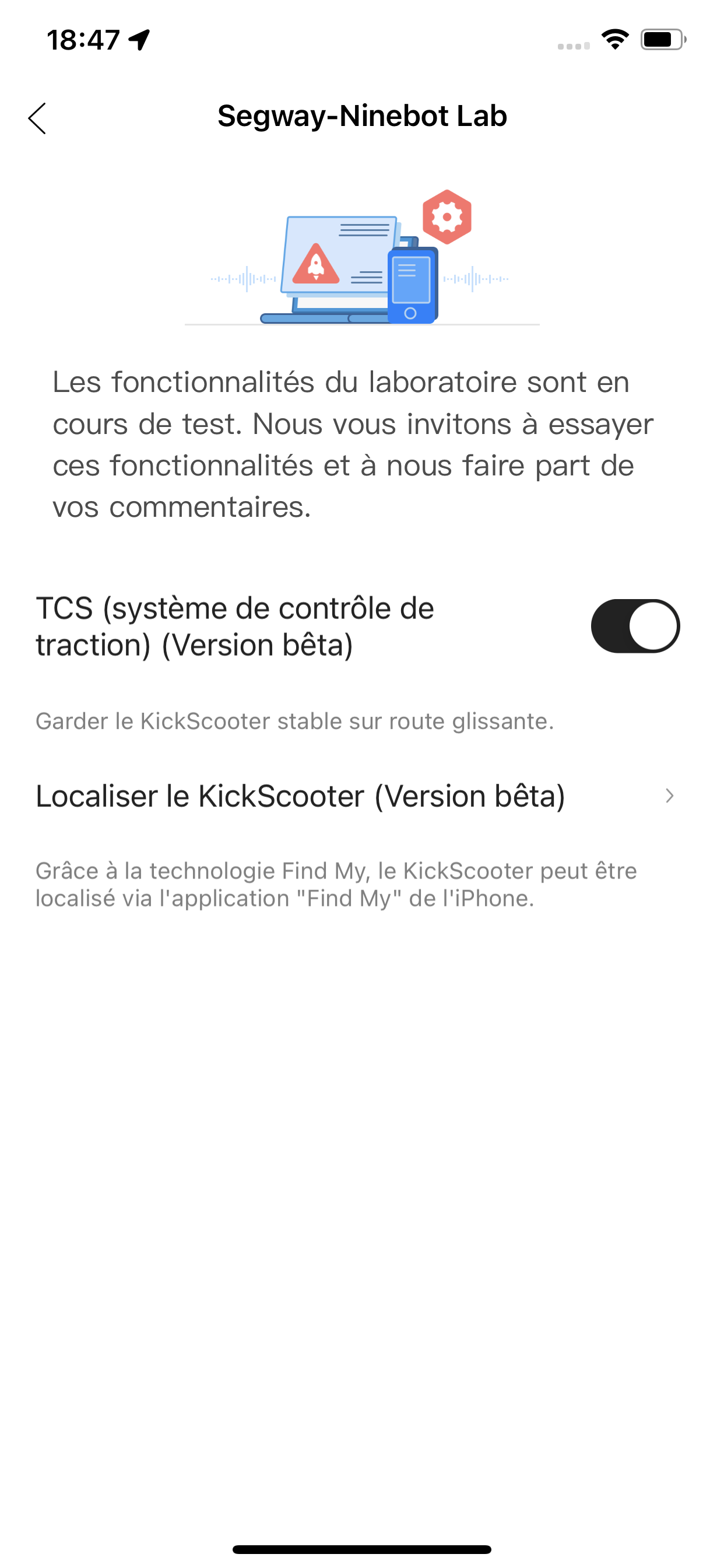 Autre fonctionnalité réservée à iOS : l’option “Find My”, qui permet d’ajouter la trottinette comme appareil dans le “Find My” d’Apple. Cette option n’est actuellement pas disponible sur les appareils Android, y compris les Samsung qui offrent pourtant le même système de localisation.