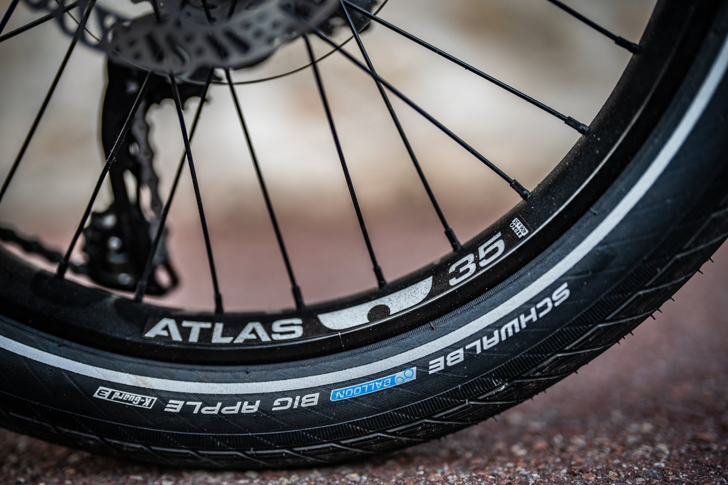 Le phare avant est puissant, bien qu’il donne une impression un peu bon marché. Le phare arrière aurait mérité un éclairage plus puissant avec plusieurs LED et une meilleure intégration. Les jantes ont été spécialement conçues pour Tern afin de résister à la charge. Les pneus Big Apple sont presque incontournables dans ce contexte, car ils sont à la fois résistants et confortables.