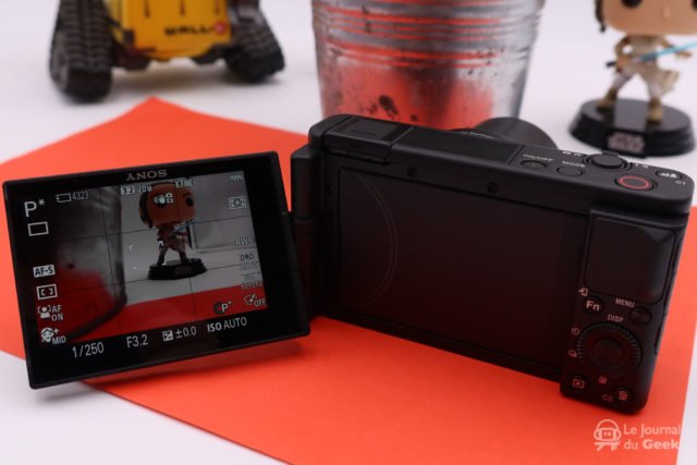 Pour rappel, le ZV-1 reprend ce que proposait le RX-100 Mark VII mais avec l’objectif, plus lumineux, du RX-100 Mark V. Le boitier n’est plus métal pour une meilleure dissipation de la chaleur et propose maintenant un grip intégré pour une meilleure prise en main. On perd également le viseur électronique, au profit d’un écran tactile et orientable sur 270°, bien plus pratique pour le vlogging puisqu’il s’ouvre sur le côté. Enfin, en plus d’une entrée micro, on notera un vrai micro shotgun sur le dessus de l’appareil. Ce dernier est dédié à la capture audio directionnelle et frontale
