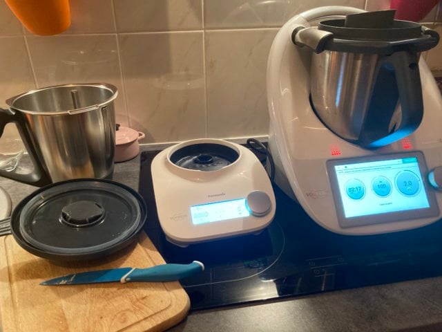 À noter aussi que la plupart des recettes nécessitent des « allers-retours » entre le TM6 et le Friend, pour peser dans le Thermomix puis cuire dans le Friend, à nouveau pour mixer dans l’un puis mijoter dans l’autre, ou encore pour cuire dans TM6 et maintenir au chaud avec le Friend… Nous avons trouvé ces manipulations un peu lassantes à la longue. Nous nous sommes plusieurs fois fait la remarque que l’achat d’un second bol pour le TM6 (139 euros) permettait déjà de gagner un certain temps (en évitant de laver puis essuyer le bol entre deux préparations) et était peut-être plus pertinente pour certains utilisateurs.