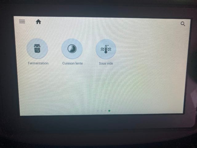 Enfin, lorsqu’on utilise le robot manuellement, les modes sont d’une aide précieuse. On y accède en faisant glisser l’écran principal vers la droite. Et en l’occurrence, ils sont nombreux et variés. Selon les habitudes culinaires de chacun, certains ne seront pas utiles ou pas souvent, mais on apprécie leur présence. Par exemple, on trouve un mode dédié à la cuisson sous-vide, un autre à la cuisson lente, à faire chauffer de l’eau (bouilloire) ou encore à la fermentation (pour préparer des yaourts maison). Autres modes utiles : pétrin, préparation de sauces, rice cooker ou un mode bien pensé pour la cuisson des œufs, pas toujours évidente à réussir mais testée plusieurs fois et toujours réussie. Nous avons aussi particulièrement apprécié le mode dédié au nettoyage, très efficace. Il se décompose en fait en plusieurs programmes adaptés aux préparations qui ont été réalisées. À la fin du cycle, un rapide rinçage suffit la plupart du temps pour que le bol et le couteau soient impeccables.