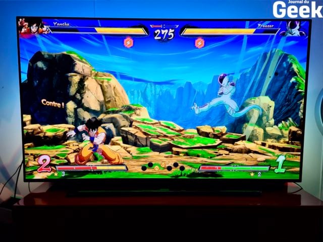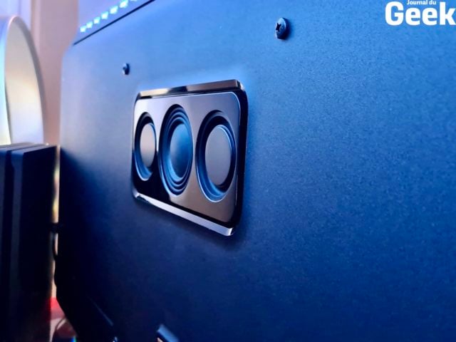 L’immersion est d’ailleurs encore davantage renforcée grâce à l’excellent système audio que l’on retrouve à l’arrière du téléviseur. Si l’OLED854 ne bénéficie pas des compétences de Bower & Wilkins sur ce modèle, lesquelles sont réservées aux haut de gamme, les performances audio de ce téléviseur sont extrêmement bonnes. Clairement, on a affaire à un vrai système audio composé de deux tweeters de 10W et d’un caisson de basse de 30W, qui permettra même d’oublier l’idée d’y accoler une barre de son. Le son est riche, puissant, mais il est, hélas, orienté vers le mur, ce qui lui fait perdre un peu de profondeur. Mais après tout, c’était ça ou se coltiner une large bordure disgracieuse à l’avant.