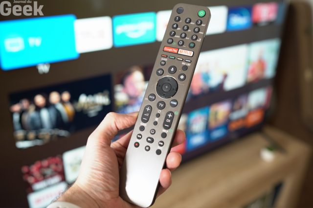 Du côté de l’interface, Sony a privilégié Android TV et non une solution maison comme Samsung ou LG, par exemple. Cette solution a le mérite d’être parfaitement prête à l’emploi, avec une interface plutôt claire et simple à appréhender, malgré son côté un brin austère. Surtout, on se retrouve d’emblée avec le catalogue d’application le plus complet du marché. Ainsi, on retrouve aussi bien Netflix que Disney+ (depuis le premier jour), mais aussi Amazon Prime Video, MyCanal, Molotov, OCS… Bref, tout l’essentiel afin de profiter du maximum de contenu sur le téléviseur. Android TV oblige, on retrouve également l’intégration de Google Assistant nativement sur la Sony XH95. L’avance de l’assistant maison de la firme de Mountain View n’est vraiment plus à prouver, et c’est un bonheur de le retrouver sur un téléviseur sur lequel il est bien moins aisé de taper du texte pour chercher un contenu précis, par exemple. Mais si les utilisateurs d’Android profiteront d’un écosystème plutôt complet, Sony n’oublie pas pour autant les utilisateurs d’iPhone ou autres produits Apple, puisque la Sony XH95 dispose également d’AirPlay 2, afin de streamer ses contenus très facilement depuis ses appareils iOS/macOS. En ce qui concerne la télécommande, elle s’avère très jolie avec son aluminium brossé, complète, ergonomique et plutôt bien pensée. Petit plus : le rétro-éclairage s’active seulement lorsque vous bougez la télécommande, afin de ne pas consommer les piles trop rapidement.