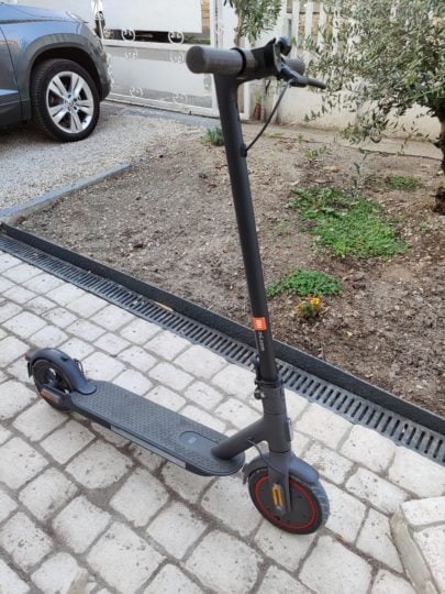 Le bolide est équipé de nouveaux pneus de 8,5 pouces, qui ont été considérablement améliorés selon le constructeur, notamment leurs performances anti-éclatement et leur durabilité multipliée par trois. Chose que nous ne pouvons pas vérifier sur une session de test de 15 jours malheureusement. Mais cela reste des pneus confortables (aussi bien sur une route plate, qu’une route non goudronnée) avec toutes les problématiques qui vont avec. Car si la conduite avec ce type de pneus est plus agréable, si vous crevez, remplacer un pneu sur une trottinette Xiaomi n’est pas une mince affaire ! La bonne nouvelle c’est que le constructeur fournit maintenant un pneu de rechange (chambre à air incluse) dans la boite.